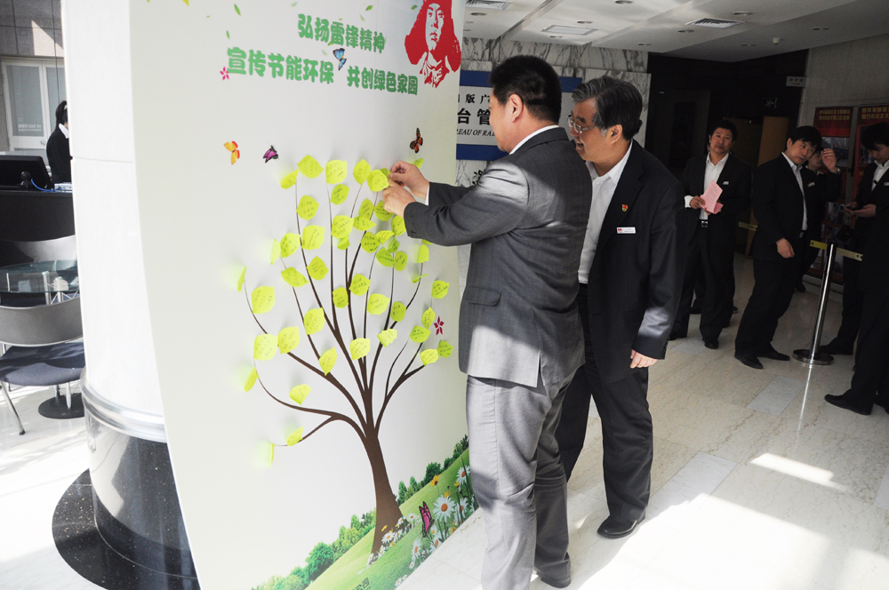 為大力弘揚(yáng)雷鋒精神,普及綠色環(huán)保理念,踐行企業(yè)社會(huì)責(zé)任,音像資料館項(xiàng)目部根據(jù)項(xiàng)目的特性,在3月5日開(kāi)展了“學(xué)雷鋒”環(huán)保宣傳活動(dòng)。活動(dòng)通過(guò)發(fā)放節(jié)能環(huán)保倡議書(shū)和向各入駐單位介紹音像資料館節(jié)能環(huán)保措施、目前水電消耗現(xiàn)狀來(lái)推廣綠色環(huán)保個(gè)人行為,倡導(dǎo)大家積極響應(yīng)國(guó)家提倡建設(shè)資源節(jié)約型社會(huì)的主旋律,共同大力推進(jìn)公共機(jī)構(gòu)節(jié)能,努力創(chuàng)建節(jié)約型建筑。同時(shí),向大家廣泛征集綠色環(huán)保宣言及簽名,大家紛紛將自己的環(huán)保宣言和“綠色祝愿”寫(xiě)在樹(shù)葉形狀的便簽上,粘貼在活動(dòng)背景板中一棵大樹(shù)的樹(shù)枝上,活動(dòng)最終呈現(xiàn)出一棵枝葉茂盛、綠意盎然的大樹(shù)。通過(guò)這些宣傳倡導(dǎo)活動(dòng),“綠色環(huán)保,你我共行;雷鋒精神,你我共創(chuàng)”的理念深入人心。