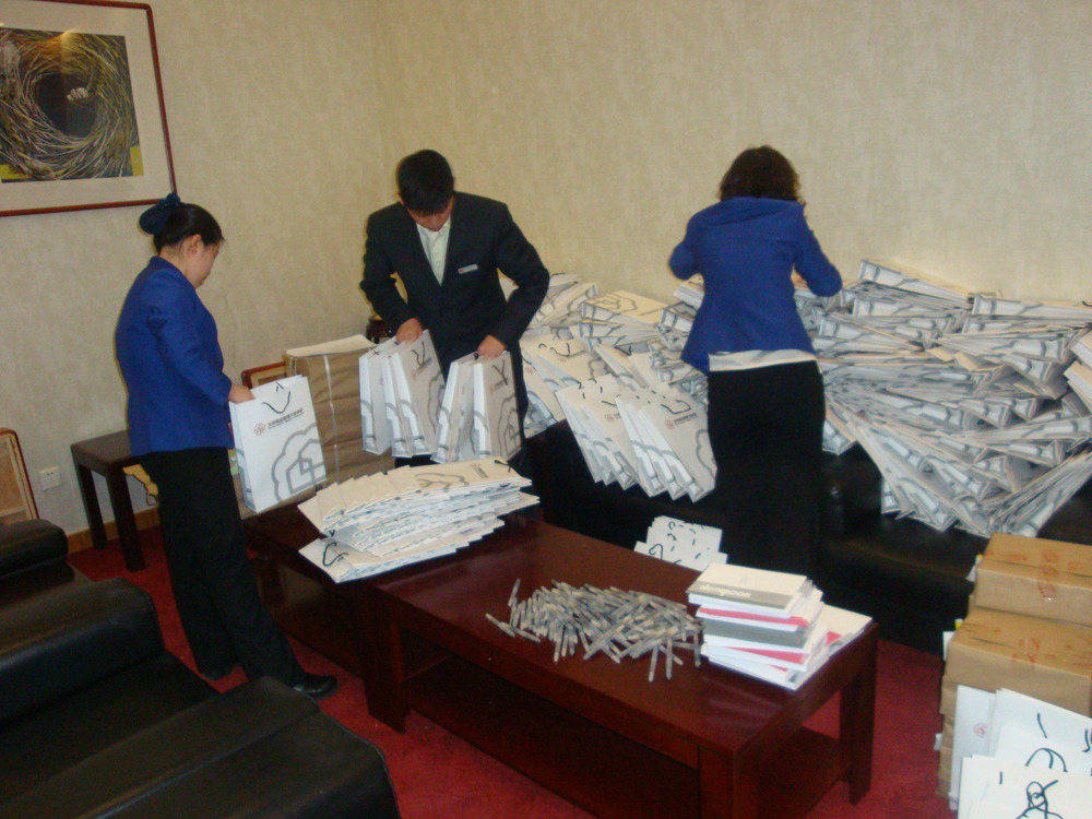 會(huì)議進(jìn)行前,客戶服務(wù)部人員提前把報(bào)告廳200多塊座椅背板進(jìn)行了重新安裝,并在會(huì)議開始前一周對于4天會(huì)議的就餐問題與無線局餐廳和中央電視臺后勤服務(wù)部門進(jìn)行了有效溝通,保證了學(xué)員就餐。因本次北京市物協(xié)同時(shí)開辦6個(gè)項(xiàng)目負(fù)責(zé)人培訓(xùn)班,報(bào)名參加培訓(xùn)的人員多,客服辦公室人員放棄了午休和周末,提前協(xié)助物協(xié)的教師做了大量工作:把學(xué)習(xí)資料、用書、考試須知共計(jì)640套裝袋,并進(jìn)行了4天會(huì)議每天上下午的簽到、午餐盒飯的發(fā)放和就餐秩序的維持工作??头k公室通過熱情優(yōu)質(zhì)的服務(wù),獲得了物協(xié)領(lǐng)導(dǎo)的認(rèn)可。