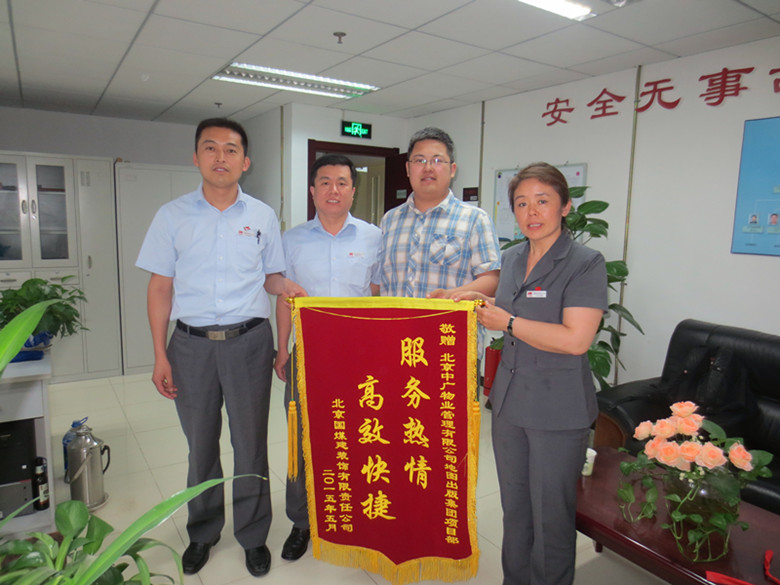 2015年5月18日,北京國煤建裝飾責任有限公司的項目經(jīng)理田曉濤將一面印有“高效快捷,服務(wù)熱情”的錦旗送到中廣物業(yè)地圖出版集團項目部儲新院主管的手上,并對項目在其裝修施工期間,給予的大力支持和幫助表示衷心的感謝!