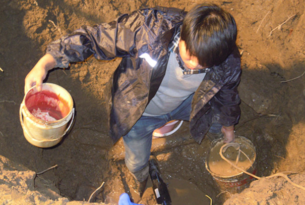 數(shù)九寒天,寒風(fēng)刺骨,挖開(kāi)地表后由于不斷有水漏出,造成作業(yè)面處全是泥水,給開(kāi)挖工作帶來(lái)很大的困難,隨著挖土的深度越來(lái)越深,越來(lái)越接近漏水的管道泥水也就越多困難也就越大,為了盡快挖出管道漏水處,真武家園項(xiàng)目部員工李文利、張慶元跳入坑中雙腿泡在泥水中作業(yè)最終將具體漏水點(diǎn)找到,此時(shí)兩人已經(jīng)是渾身濕透。