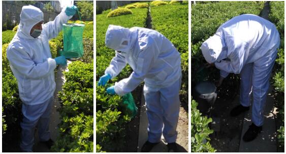 根據(jù)蒼蠅生長(zhǎng)習(xí)性,在4月中旬新生世代開(kāi)始出現(xiàn)孳生繁殖,而位于央視新址主樓南側(cè)、北側(cè)均有建筑施工,西側(cè)緊鄰地鐵站,人員流動(dòng)大、早餐點(diǎn)較多,給蒼蠅孳生提供有利生存條件和棲息場(chǎng)所。由于南、北廣場(chǎng)進(jìn)入主樓大門(mén)與旋轉(zhuǎn)門(mén)晝夜開(kāi)啟未安裝風(fēng)幕機(jī),內(nèi)外環(huán)境未隔絕。導(dǎo)致蒼蠅從南北門(mén)進(jìn)入主樓,為防止蒼蠅傳播疾病影響業(yè)主工作生活,央視項(xiàng)目部消殺組采用“籠捕法”在綠植內(nèi)懸掛捕蠅籠,控制其孳生源頭以防止蒼蠅從大門(mén)進(jìn)入主樓密度。蒼蠅喜歡“聞香逐臭”,針對(duì)于此,有害生物防制專業(yè)分別在布放為南、北、西側(cè)綠籬重點(diǎn)區(qū)域位置加密布放捕蠅籠。懸掛原則將捕蠅籠懸掛于陰涼、避風(fēng)、隱蔽處與周圍環(huán)境一致,既不影響整體環(huán)境美觀又能高效捕獲蒼蠅,從而減少蒼蠅進(jìn)入主樓的密度。