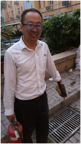 9月30日7:40分左右,音像資料館項目部秩序維護專業(yè)主管王多嶺在對大廈外圍進行巡視時,突然聞到一股燃燒的焦糊味,他尋著焦糊味發(fā)現(xiàn)是相鄰的7號院西側(cè)2層一居民家中的廚房窗戶有濃煙冒出并伴有明火,王多嶺立即通知7號院項目及所屬總局住宅項目部的有關(guān)負責人,音像資料館項目部經(jīng)理李長青馬上向公司總經(jīng)理黃建偉作了匯報,黃總及時趕到現(xiàn)場并組織對火情進行處理。