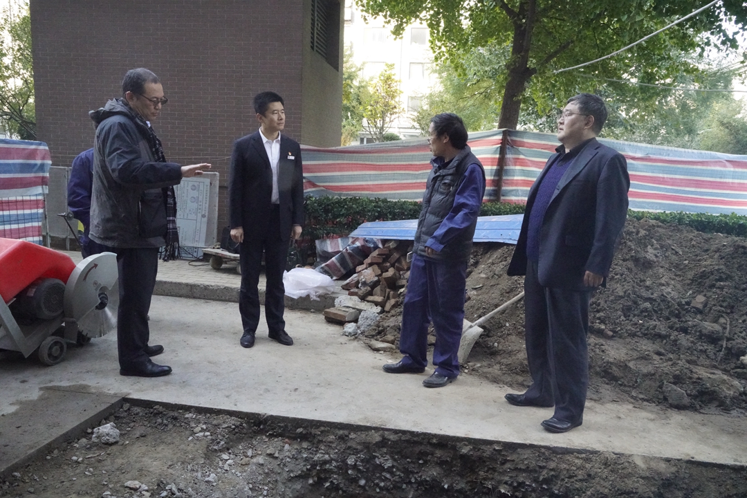 根據(jù)項(xiàng)目部制定的維修方案,項(xiàng)目部主管楊雙玉、真武家園項(xiàng)目主管劉忠進(jìn)及時組織搶修隊(duì)伍、準(zhǔn)備地面切割工具,挖土的工具鐵鍬、鎬等,組織協(xié)調(diào)人員參加搶修工作。在施工過程中項(xiàng)目部始終把安全工作放在第一位,設(shè)立圍擋,張貼安全提示,搶修人員都戴上安全帽,確保安全。