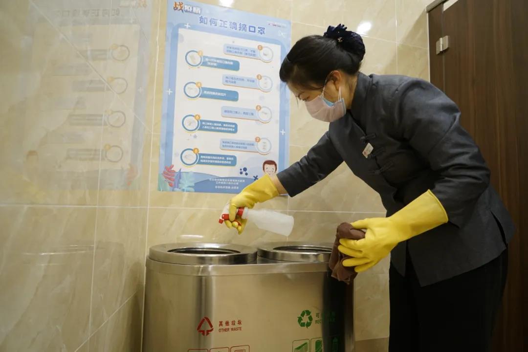 疫情防控期間,總臺(tái)食堂暫停集中聚餐,改為盒飯形式提供就餐,項(xiàng)目部按臺(tái)上級(jí)領(lǐng)導(dǎo)要求在辦公區(qū)域設(shè)置廚余垃圾桶,做到日產(chǎn)日清;中塔項(xiàng)目在疫情封塔期間,克服人員緊缺,依然每日對(duì)衛(wèi)生間、餐廳、外圍垃圾桶等公共區(qū)域進(jìn)行消毒清理,履行服務(wù)承諾與義務(wù)。