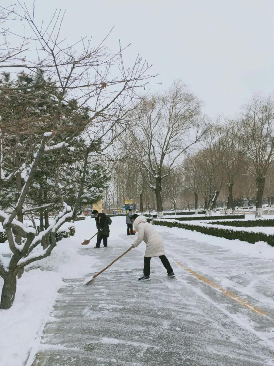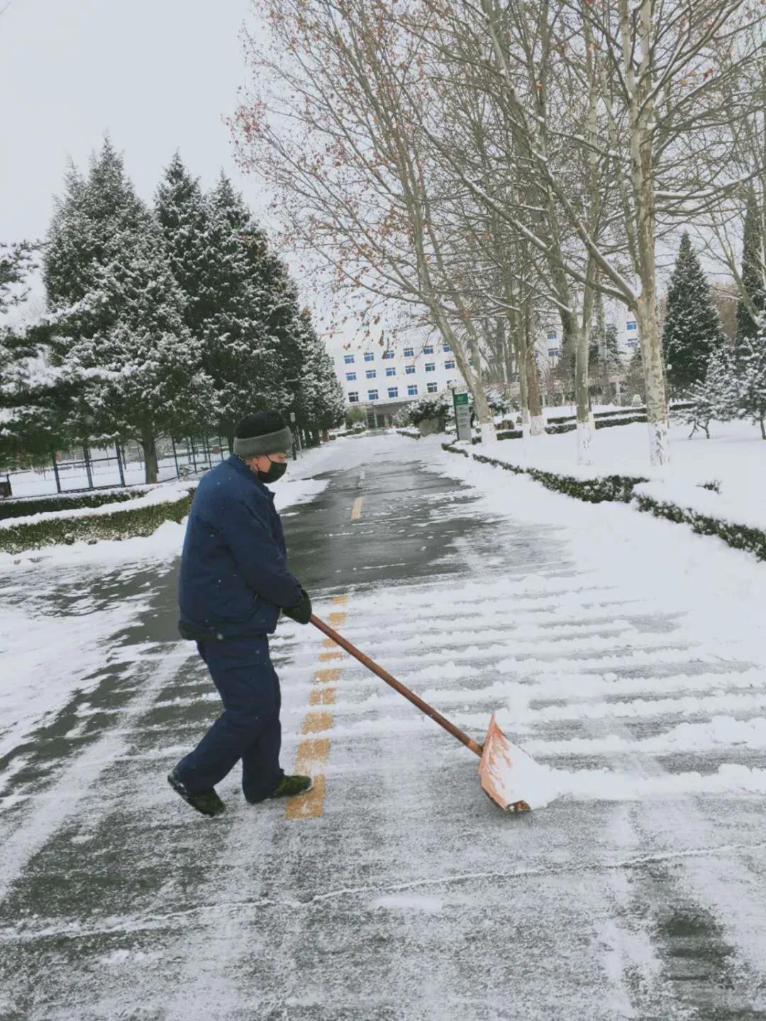 在抗擊疫情的關(guān)鍵時(shí)期,北京迎來(lái)了持續(xù)性降雪天氣,氣溫驟降,道路結(jié)冰,嚴(yán)重影響出行安全。在做好個(gè)人防護(hù)的前提下,項(xiàng)目部全員積極行動(dòng)、齊心協(xié)力,頂風(fēng)雪、冒嚴(yán)寒,開(kāi)展掃雪除冰工作。大家揮舞著笤帚和鐵鍬,風(fēng)雪中堅(jiān)守“疫”線(xiàn),凜冽的寒風(fēng)讓他們的臉和雙手被凍的通紅,但奉獻(xiàn)的熱情和團(tuán)結(jié)的力量讓他們化嚴(yán)寒為動(dòng)力,讓中廣人暖心服務(wù)在風(fēng)雪中升溫,為出行安全提供有力保障。