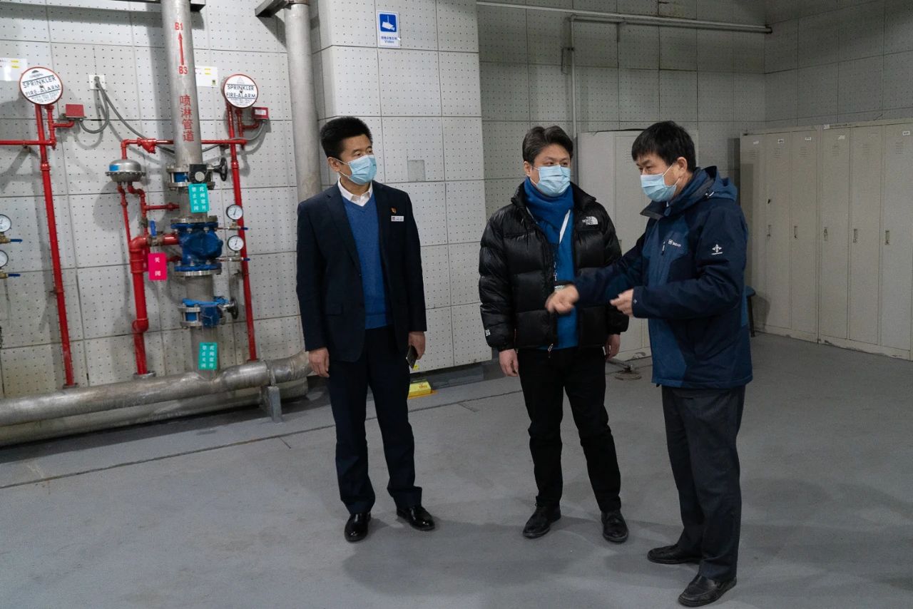 周總一行在公司總經(jīng)理崔立新等成員的陪同下,對音像資料館監(jiān)控機(jī)房、供配電機(jī)房、供熱站、UPS室、消防水泵房等進(jìn)行現(xiàn)場檢查指導(dǎo),聽取公司安全生產(chǎn)工作匯報(bào),實(shí)地查看疫情防控、服務(wù)保障等工作落實(shí)情況,詳細(xì)了解公司疫情防控各項(xiàng)措施。
