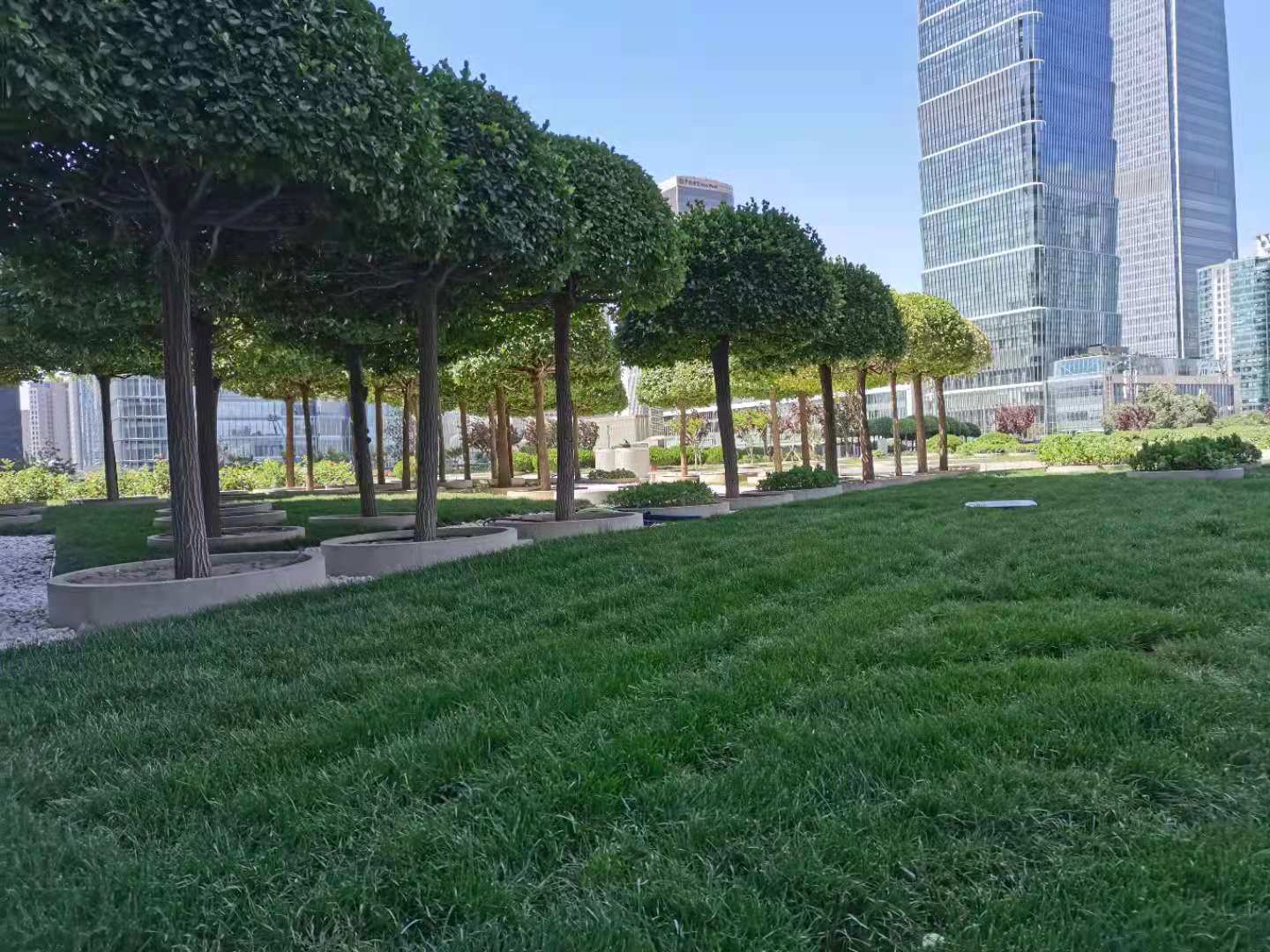 為確保草坪改造達(dá)到預(yù)期效果,自接到任務(wù)后,公司物資部、園林綠化子公司、央視光華路項(xiàng)目部密切配合,制定詳細(xì)工作方案,按照氣候特點(diǎn)、草種品類、運(yùn)輸清運(yùn)等需求,物資部協(xié)同園林綠化子公司多次深入位于順義、昌平等草坪種植基地調(diào)研考察,結(jié)合草坪播種情況、灌溉能力等因素,選用冷暖季型草坪混播,達(dá)到無論在高溫還是嚴(yán)寒的環(huán)境下,都能夠保持常青的狀態(tài),觀賞價(jià)值較高。