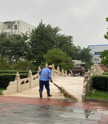 7月17日早晨,山雨欲來間,中廣人不敢懈怠,不顧滿身的倦意,膠靴不離腳、手電不離身,24小時(shí)不間斷巡查公司在京各項(xiàng)目近100個(gè)防汛點(diǎn)位,安排專人值守,保障排水設(shè)施通暢。