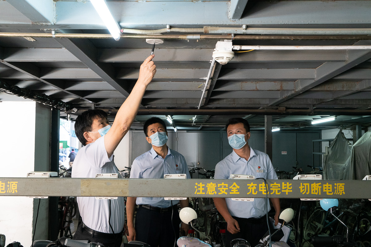 2021年9月20日通州區(qū)某小區(qū)因電動自行車室內(nèi)充電引發(fā)火災(zāi)事故,導致5名居民死亡。9月22日,公司總經(jīng)理、安委會主任崔立新帶隊,對公司服務(wù)的總臺音像資料館、總臺影視之家、央視住宅小區(qū)和廣電總局小區(qū)等項目開展電動自行車充電安全專項檢查工作,公司總經(jīng)理助理何軍、技術(shù)總監(jiān)李長青、品質(zhì)管理部經(jīng)理兼安委會副主任劉蕾、技術(shù)管理部主任呂全軍以及相關(guān)項目部負責人陪同檢查。