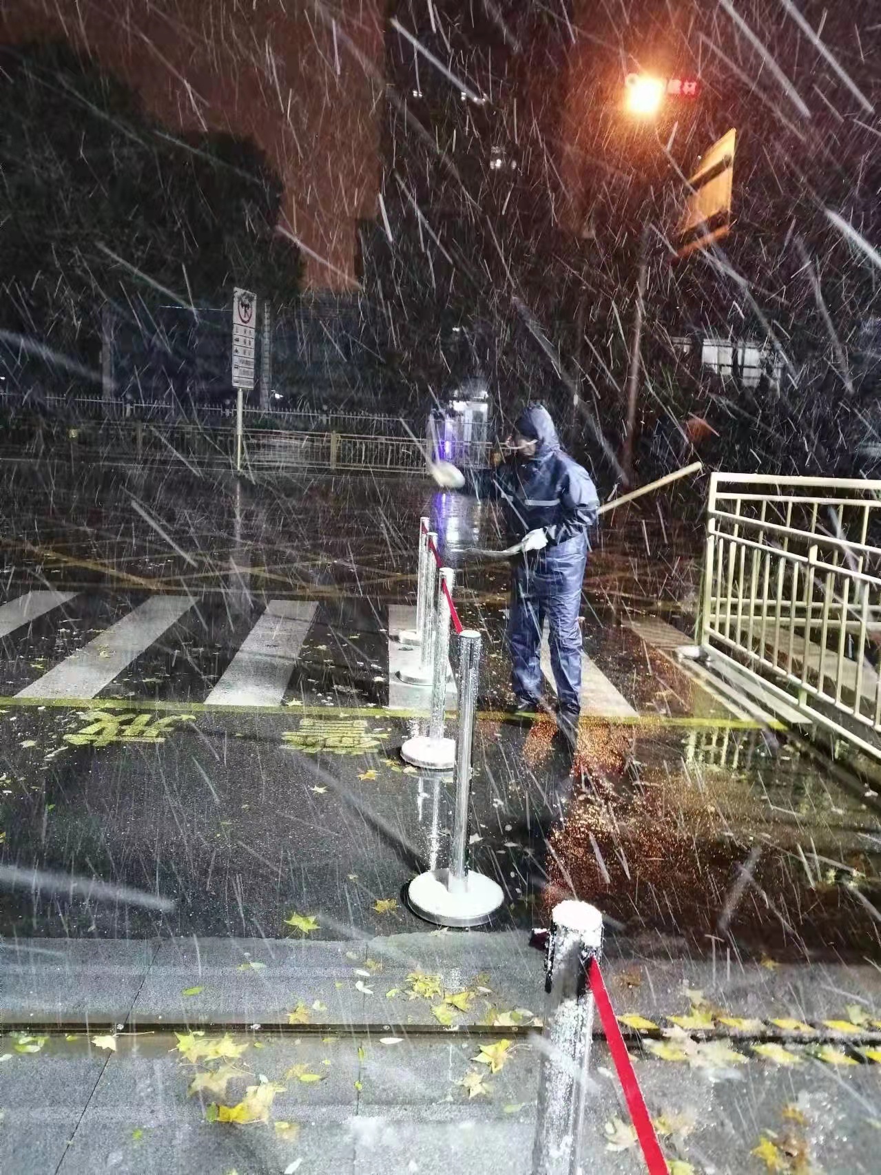 11月6日傍晚至7日,北京受強冷空氣影響,立冬逢初雪,大地悄然間穿上皚皚銀裝,地面濕滑、道路結(jié)冰,給來往人員和車輛的出行帶來不便。北京中廣物業(yè)管理有限公司在京各項目以雪為令,迎風雪、頂嚴寒,積極有序開展掃雪除冰工作,消除安全隱患。