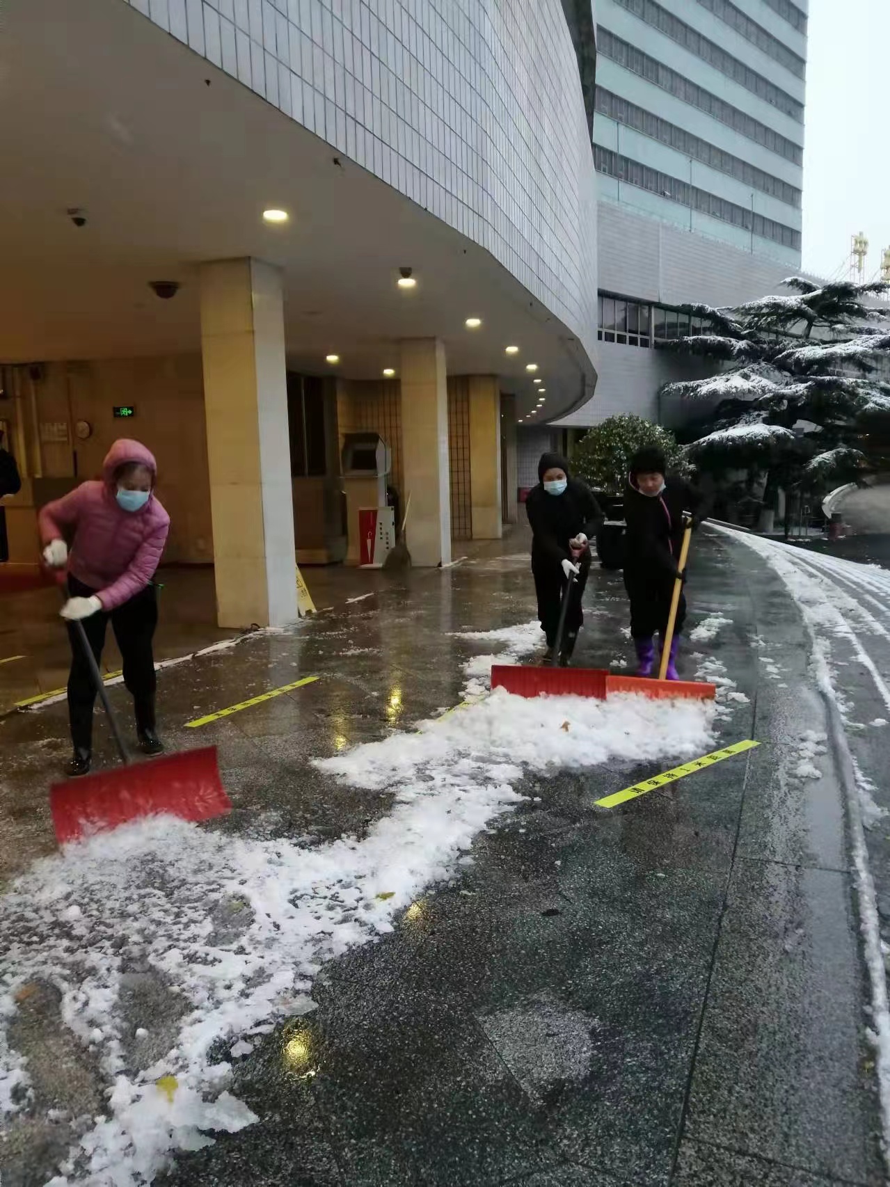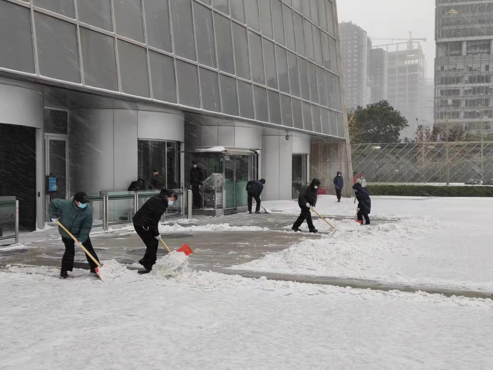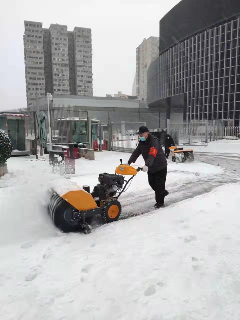 為最大限度地減少降雪天氣對業(yè)主出行造成的影響,公司安委會密切關(guān)注氣象預警,第一時間轉(zhuǎn)發(fā)寒潮、大風、暴雪、道路結(jié)冰黃色預警信息,在京各項目立即啟動雪天應急預案,積極投入到掃雪除冰工作中,在主要通道噴灑融雪劑,樓門入口鋪設防滑墊,設立“小心地滑”提示牌,出動三百余人次,利用推雪板等各種掃雪工具進行清理。