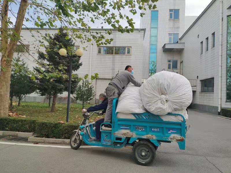 近日,北京迎來寒潮天氣,導(dǎo)致學(xué)院內(nèi)落葉激增,從而帶來一定的潛在消防隱患。為及時消除安全隱患,11月12日上午,部門主管常連華組織員工進行義務(wù)清掃活動。由于落葉過多,為了提高效率又達(dá)到節(jié)能降耗的目的,洗衣房專業(yè)提前將客房退下來的廢舊被單進行拼接,縫制成口袋,分發(fā)給各專業(yè)。各專業(yè)專業(yè)人員三人一組,利用縫制的特大口袋和清掃工具在各自責(zé)任區(qū)域進行落葉的集中收集工作。大家分工明確,通力配合,很快便將南、北樓、宿舍樓前及主干道的落葉清掃干凈,就連連廊和灌木草坪內(nèi)的落葉也清掃干凈。經(jīng)過近兩個小時的時間,最終清掃出近五十袋的枯枝落葉。即便塵土飛揚,落葉泥濘不堪,但是大家的工作激情絲毫不減,紛紛埋頭苦干,不放過一片落葉,不僅大大美化了學(xué)院的環(huán)境,同時也降低了消防安全隱患,可謂說一舉兩得。