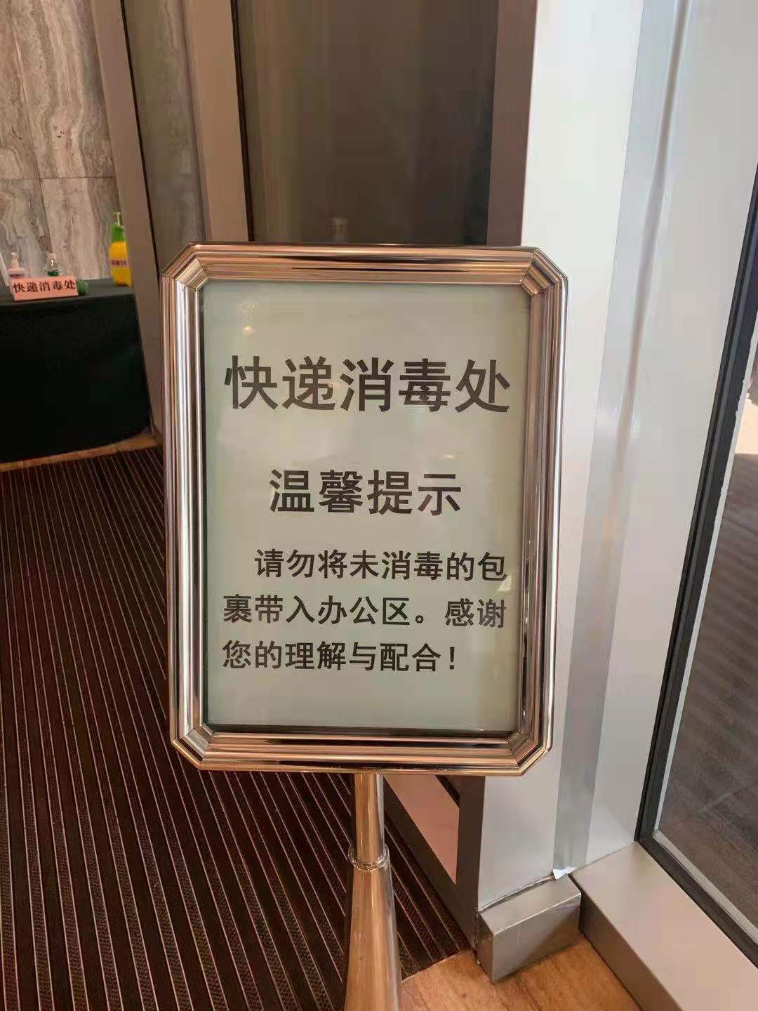 同時,嚴(yán)格落實總臺疫情防控工作提示,在公司所服務(wù)的總臺各址辦公區(qū)門崗測溫點(diǎn),設(shè)立快遞包裹消殺區(qū),配備75%酒精試劑,確保消毒消殺藥劑充足,主動提示業(yè)主對快遞外包裹外包裝進(jìn)行消殺,未經(jīng)消殺的快遞包裹禁止帶入總臺辦公區(qū)。
