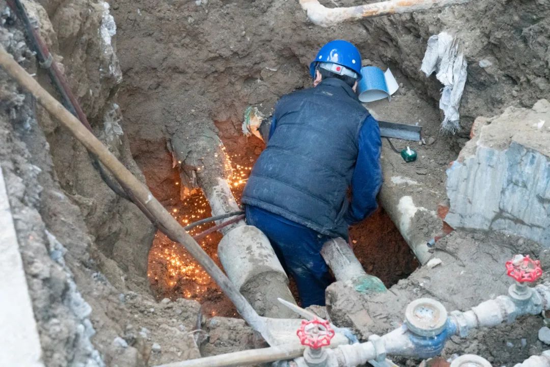 當(dāng)晚21時(shí)15分,高區(qū)供熱管道再次出現(xiàn)嚴(yán)重漏水,維修人員立即上報(bào)項(xiàng)目負(fù)責(zé)人,并關(guān)閉高區(qū)閥門和循環(huán)泵,查找漏點(diǎn)??偩窒嚓P(guān)領(lǐng)導(dǎo)、公司領(lǐng)導(dǎo)、項(xiàng)目部負(fù)責(zé)人聞?dòng)嵑蠖稼s到現(xiàn)場(chǎng)指導(dǎo)搶修工作,維修人員不辭辛勞、連續(xù)奮戰(zhàn),對(duì)漏水點(diǎn)進(jìn)行處理,并于凌晨2時(shí)30分恢復(fù)供暖。但由于管道老化、銹蝕,凌晨5時(shí)10分此處又再次出現(xiàn)漏水現(xiàn)象。1月8日上午,公司領(lǐng)導(dǎo)、技術(shù)總監(jiān)、技術(shù)管理部、物資部、項(xiàng)目部領(lǐng)導(dǎo)現(xiàn)場(chǎng)商討、確定解決方案,根據(jù)方案施工,于當(dāng)晚19點(diǎn)恢復(fù)供暖。