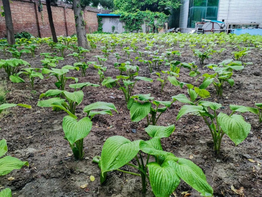 移植活動(dòng)開始前,綠化專業(yè)人員即在綜合館東北角的“移栽區(qū)”清理雜草、翻整土地,為玉簪移植開拓場(chǎng)地以創(chuàng)造適宜的生存條件。隨著移植活動(dòng)正式開始,男員工在綜合館西北側(cè)玉簪地進(jìn)行間苗,女員工將移出的玉簪搬運(yùn)至種植區(qū)。大家間苗的間苗、搬運(yùn)的搬運(yùn)、種植的種植,積極主動(dòng)、相互配合、干的熱火朝天,用時(shí)約2個(gè)小時(shí)共計(jì)移植玉簪400余株,完成60平米的移栽工作。整個(gè)過程采用間苗、挖坑、放置玉簪、封土的流水線式作業(yè),最后澆水以提高成活率。