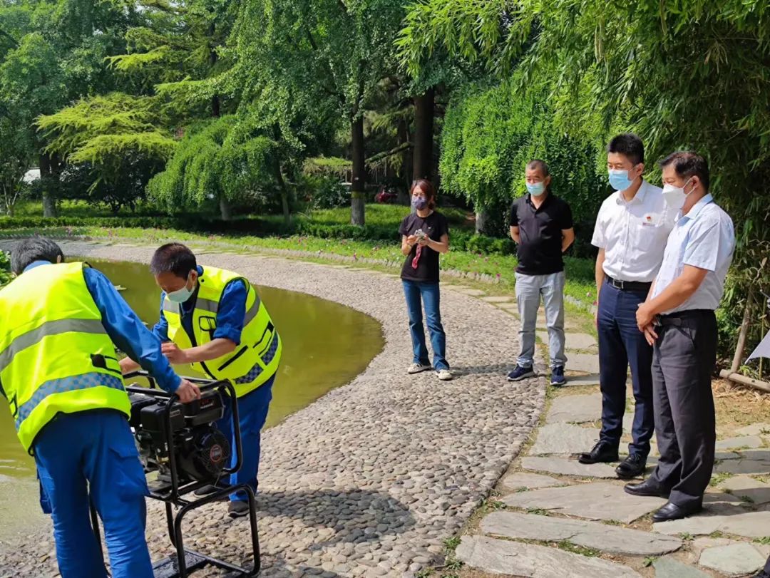 本次演練主要模擬紅色汛情預(yù)警下啟動的防汛演練活動。外圍人員在巡視時(shí)發(fā)現(xiàn)方樓后花園附近出現(xiàn)積水情況,存在極大的不安全隱患。防汛應(yīng)急搶險(xiǎn)指揮組責(zé)任人項(xiàng)目部主管王兵接到險(xiǎn)情報(bào)告,立即通知總指揮項(xiàng)目部副經(jīng)理李麗芳,發(fā)布啟動應(yīng)急防汛預(yù)案指令,防汛應(yīng)急搶險(xiǎn)組、防汛物資設(shè)備保障組、現(xiàn)場安全保障組迅速組織集結(jié)。防汛應(yīng)急搶險(xiǎn)組立即到防汛物資存放處穿戴防汛雨具,將汽油機(jī)水泵運(yùn)輸?shù)诫U(xiǎn)情處開展排險(xiǎn)工作。與此同時(shí)其他小組成員及時(shí)將防汛沙袋擺放到險(xiǎn)情通道處形成圍擋;組織人員安全撤離危險(xiǎn)地帶。所有小組成員分工明確,各司其職開展搶險(xiǎn)活動。在汛情得到有效控制后,防汛演練活動結(jié)束,整個(gè)演練過程指揮明確,各小組分工有序,責(zé)任明確,達(dá)到了防汛演練的預(yù)期目的。臺物業(yè)處領(lǐng)導(dǎo)對此次應(yīng)急防汛演練順暢完成都給予了高度肯定。