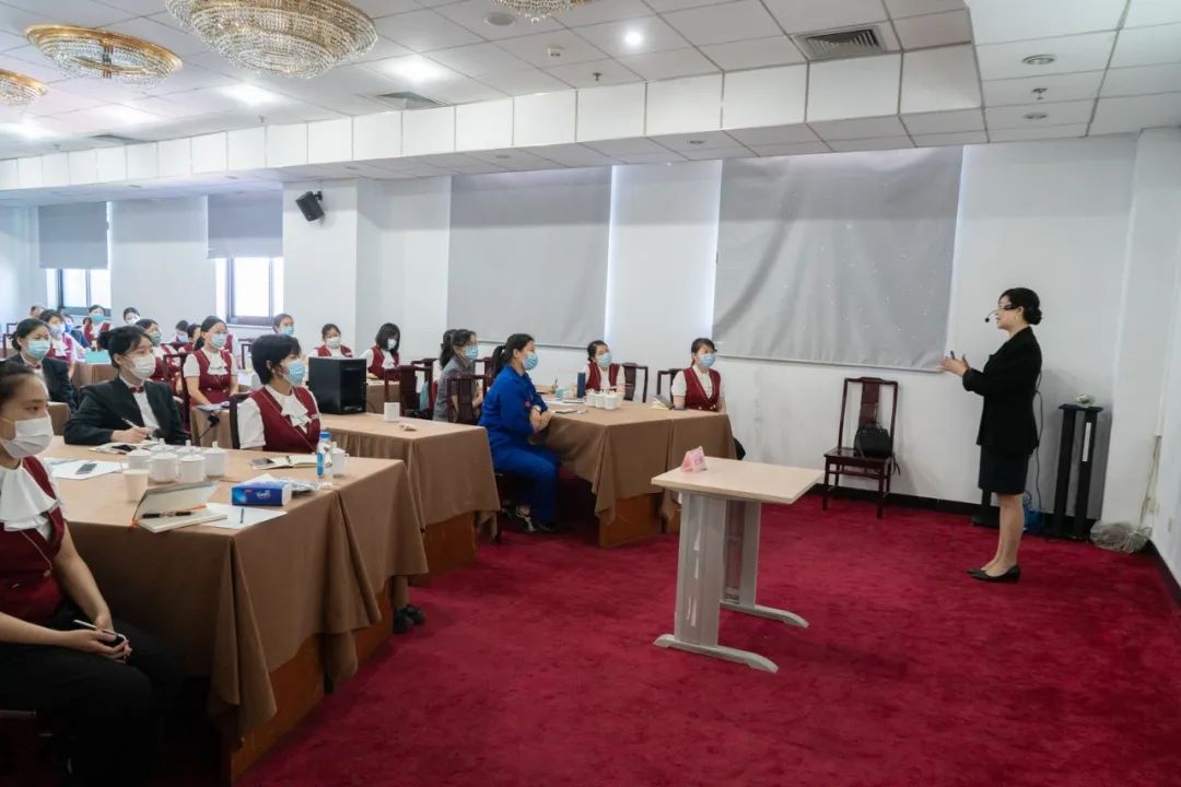 培訓中,金老師以理論和實際相結合的方式,從禮儀文化與兩會服務理念、接待形象標準化、接待技能標準化、接待服務程序、職業(yè)道德等方面進行了深入淺出的理論講解。同時,為了達到更好的培訓效果,穿插開展現(xiàn)場示范、情景教學、快問快答、小組討論等環(huán)節(jié),將抽象的理論知識具象化。參訓人員認真傾聽記錄,不時與講師開展互動,培訓達到了預期的效果。