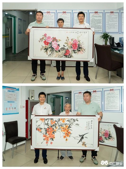 近日,業(yè)主在梵谷水郡居委會領(lǐng)導(dǎo)陪同下,將兩幅親筆畫作送到北京中廣物業(yè)管理有限公司梵谷水郡項目部,感謝公司物業(yè)團(tuán)隊提升服務(wù)品質(zhì)帶來日新月異的變化和公司員工的辛勤付出,畫作中“牡丹、柿子”躍然紙上,寓意“吉祥好運、事事如意”,期望物業(yè)工作越來越好。公司領(lǐng)導(dǎo)代表公司接收畫作并感謝業(yè)主對公司物業(yè)服務(wù)工作的肯定。