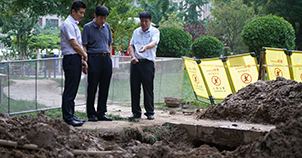 6月19日上午8時(shí),真武家園項(xiàng)目維保員工呂家斌巡視發(fā)現(xiàn)2號(hào)樓3單元門前綠地潮濕并有滲水,項(xiàng)目部立即組織現(xiàn)場(chǎng)勘察,分析判斷是2、3號(hào)樓高區(qū)自來水供水管道漏水,項(xiàng)目部第一時(shí)間上報(bào)公司,公司總經(jīng)理崔立新等公司領(lǐng)導(dǎo)以及公司技術(shù)管理部等部門有關(guān)人員迅速趕赴現(xiàn)場(chǎng),決定馬上實(shí)施挖掘,緊急搶修。...